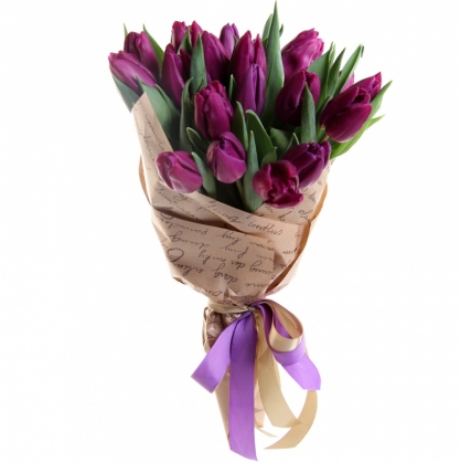 Голландские тюльпаны Purpl Prince фиолетового цвета. Букет упакован встильную крафт бумагу.